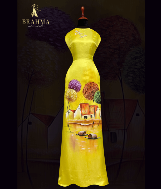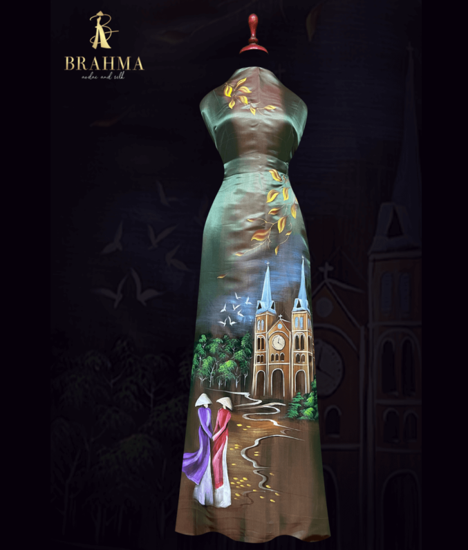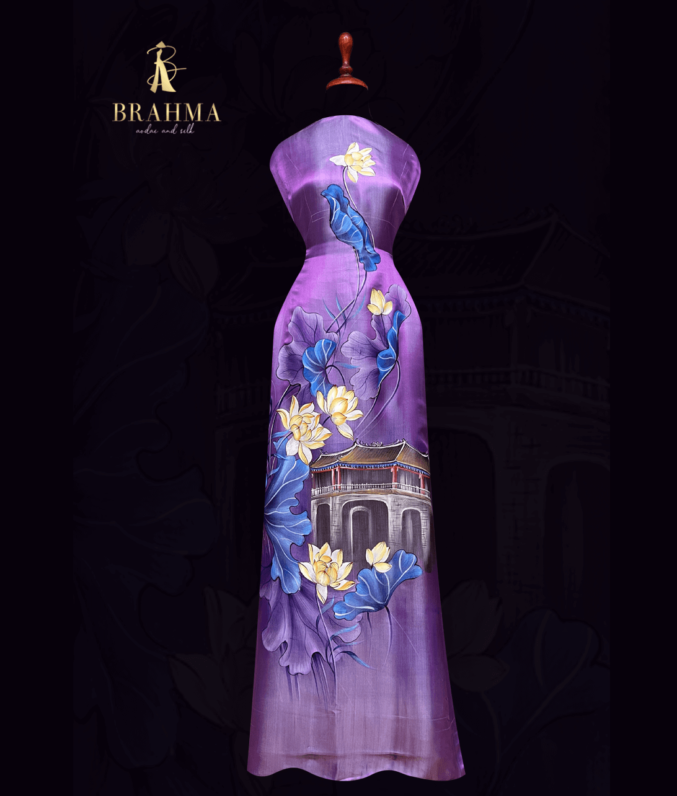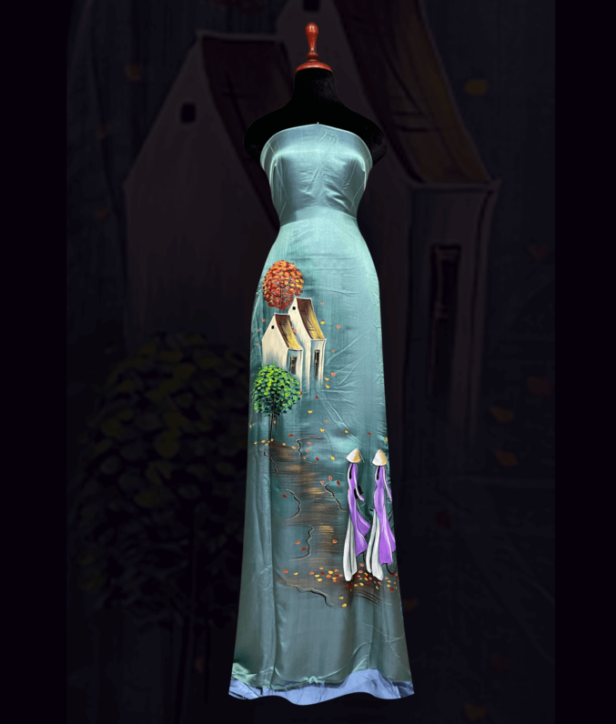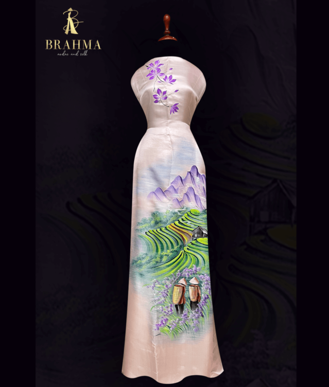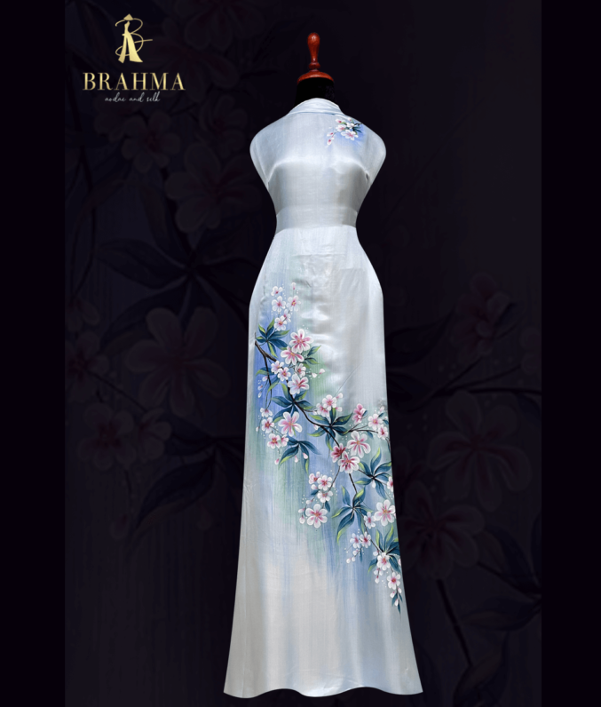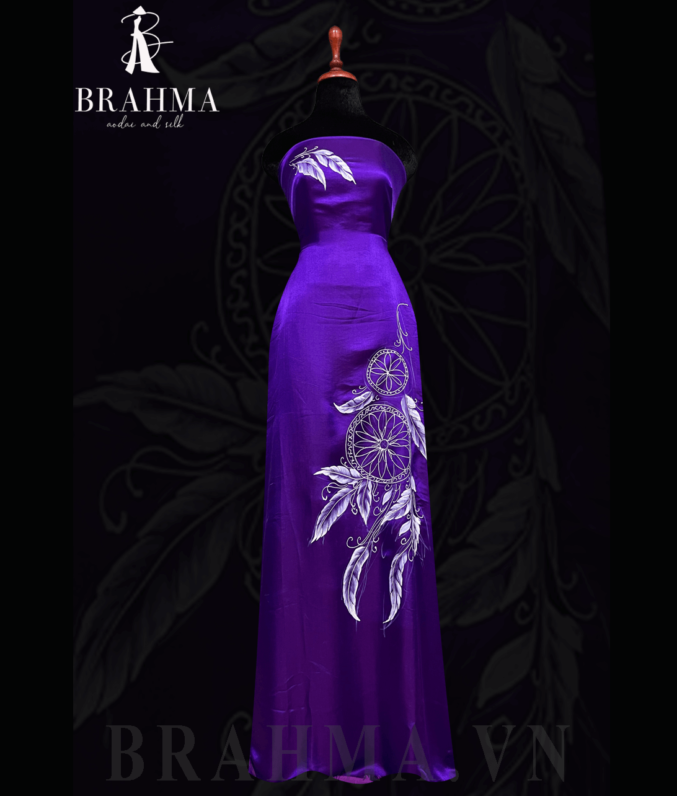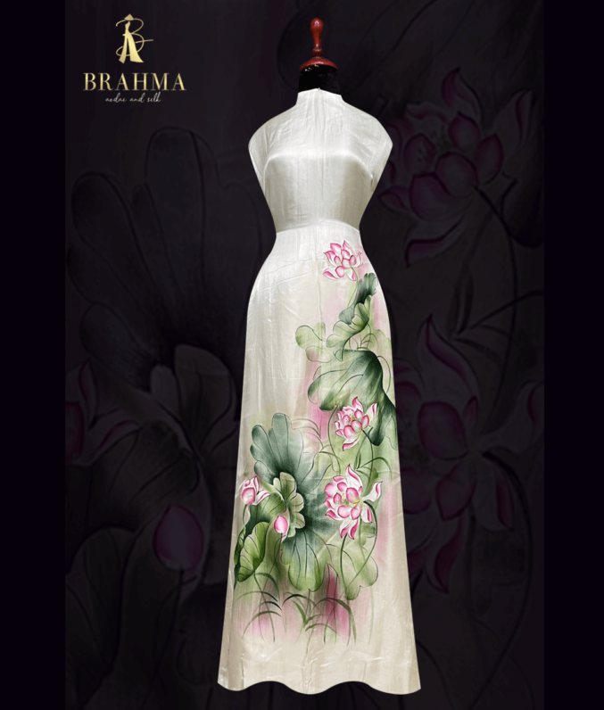 “Vải áo dài lụa tơ tằm vẽ tay cao cấp, từng đường nét họa tiết được vẽ thủ công tỉ mỉ, mang đến vẻ đẹp tinh tế và sang trọng. Chất liệu lụa tơ tằm tự nhiên mềm mại, thoáng mát, phù hợp cho những bộ áo dài truyền thống, toát lên sự quý phái, thanh thoát và đậm chất nghệ thuật Việt.”