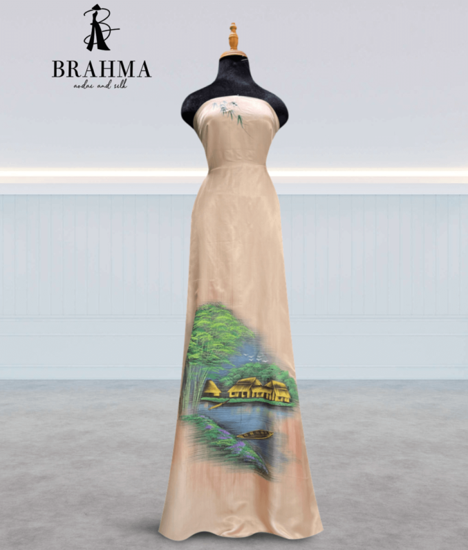 Vải Áo Dài Lụa Tơ Tằm Vẽ Tay Nghệ Thuật – Họa Sắc Việt TK56