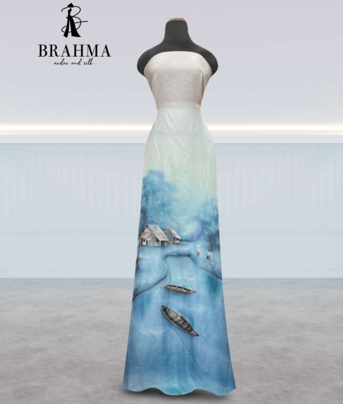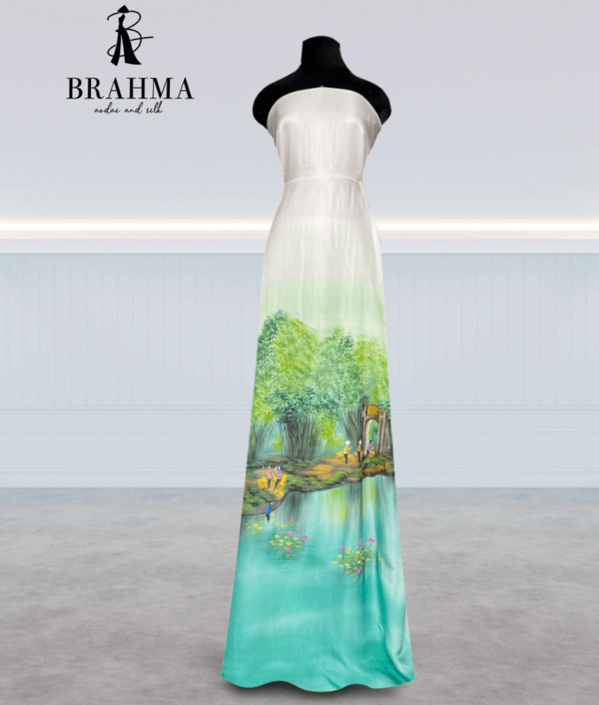 Vải Áo Dài Lụa Tơ Tằm Vẽ Tay Nghệ Thuật – Họa Sắc Việt TK68