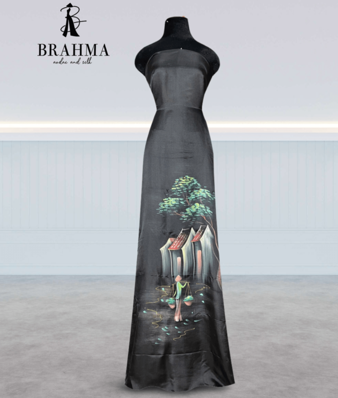 Vải Áo Dài Lụa Tơ Tằm Vẽ Tay Nghệ Thuật – Họa Sắc Việt TK69