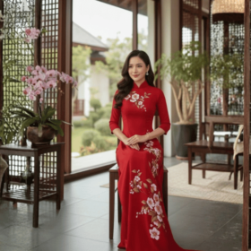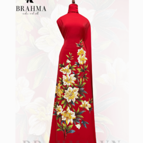Vải Áo Dài Vẽ Tay Sắc Đỏ Quyến Rũ – Họa Tiết Hoa Nhỏ Thanh Lịch BRAHMA
