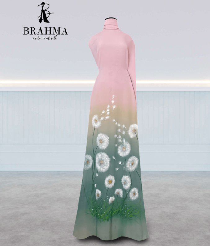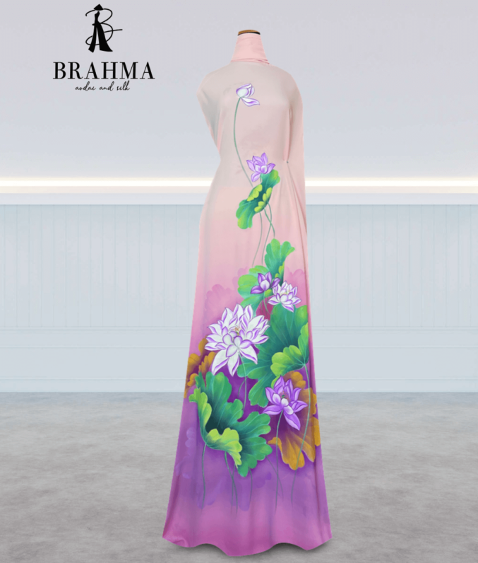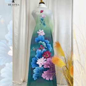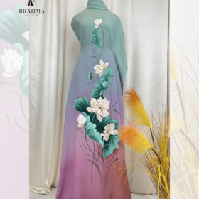 Vải Áo Dài Loang Ombre Vẽ Tay Hoa Sen – Tác Phẩm Nghệ Thuật Độc Bản