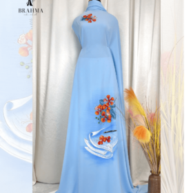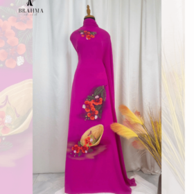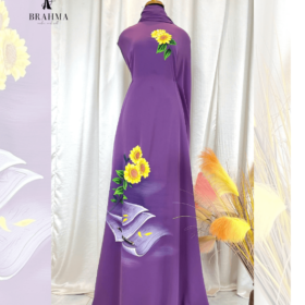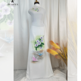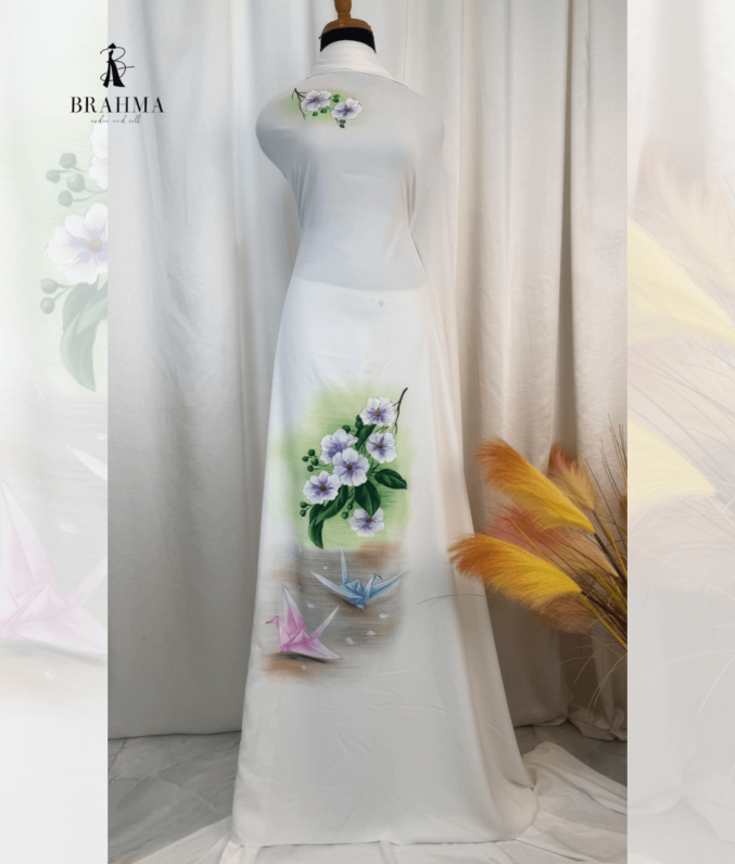 BRAHMA – Vải Áo Dài Vẽ Tay Hoa Bằng Lăng & Hạc Giấy Cho Giáo Viên