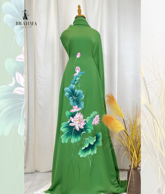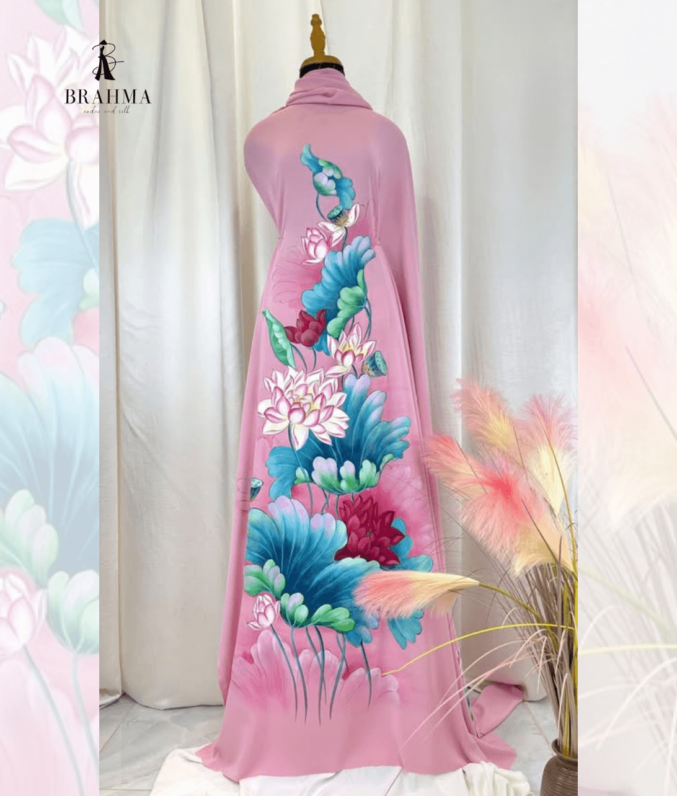 Vải áo dài hoa sen vẽ tay BRAHMA – Tinh hoa nghệ thuật Việt, thủ công độc bản