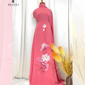 Vải áo dài hoa sen vẽ tay sắc hồng – nghệ thuật truyền thống hiện đại