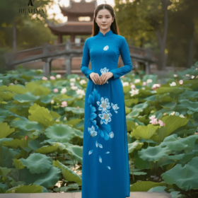Áo Dài BRAHMA – Vải Vẽ Tay Hoa Sen, Nổi Bật Với Màu Nền Phá Cách