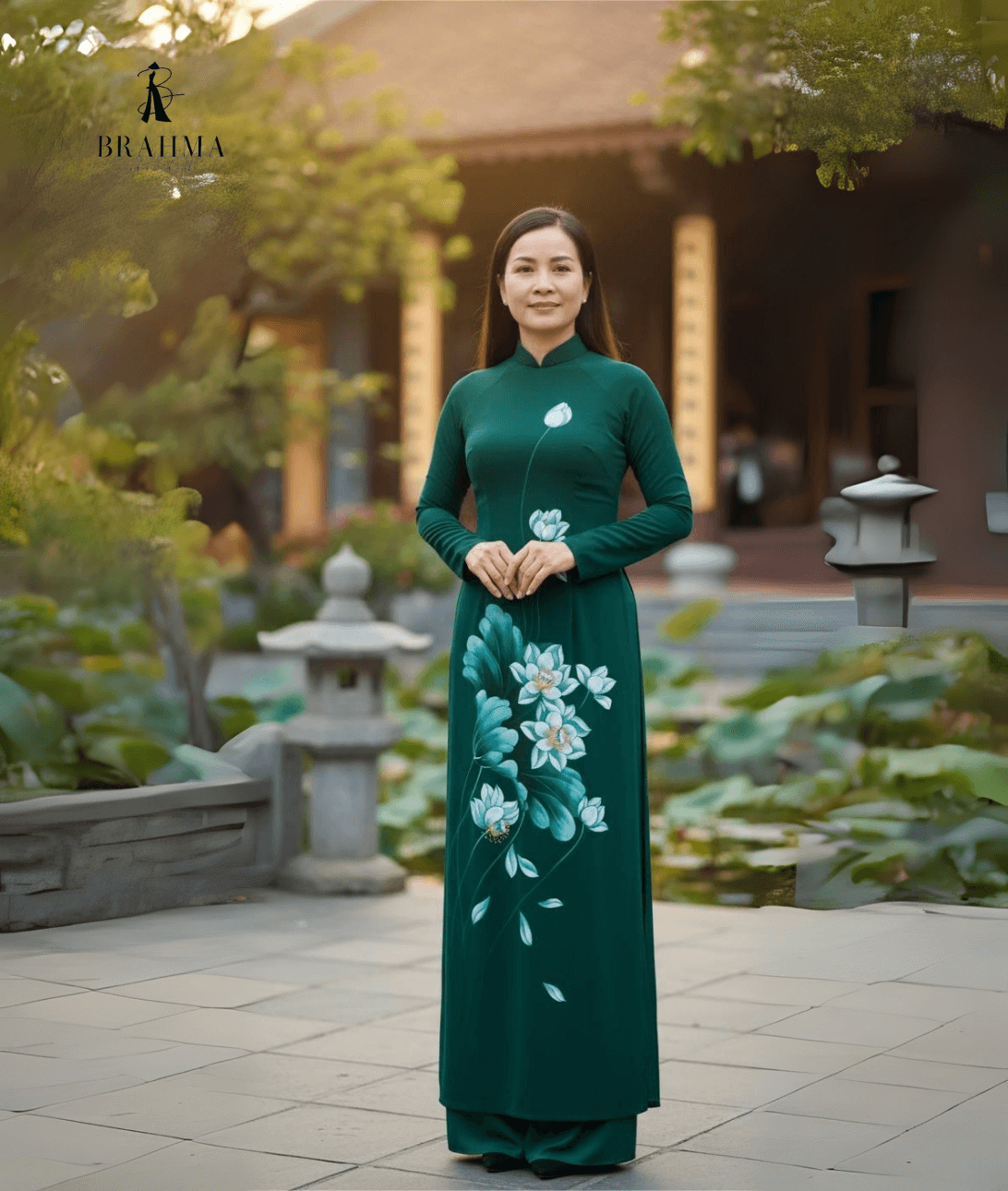 “Áo dài hoa sen vẽ tay thủ công BRAHMA – thiết kế cao cấp, độc bản, mang nét đẹp thanh cao và giá trị nghệ thuật truyền thống. Mỗi tà áo dài là một tác phẩm tinh xảo, giúp tôn dáng và khẳng định phong cách khác biệt.”