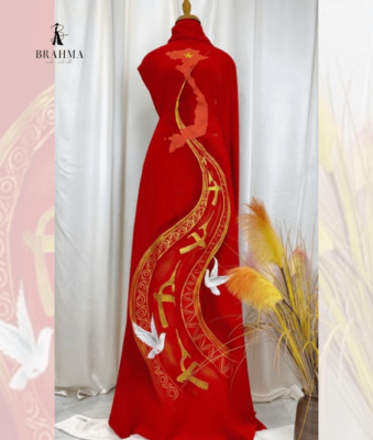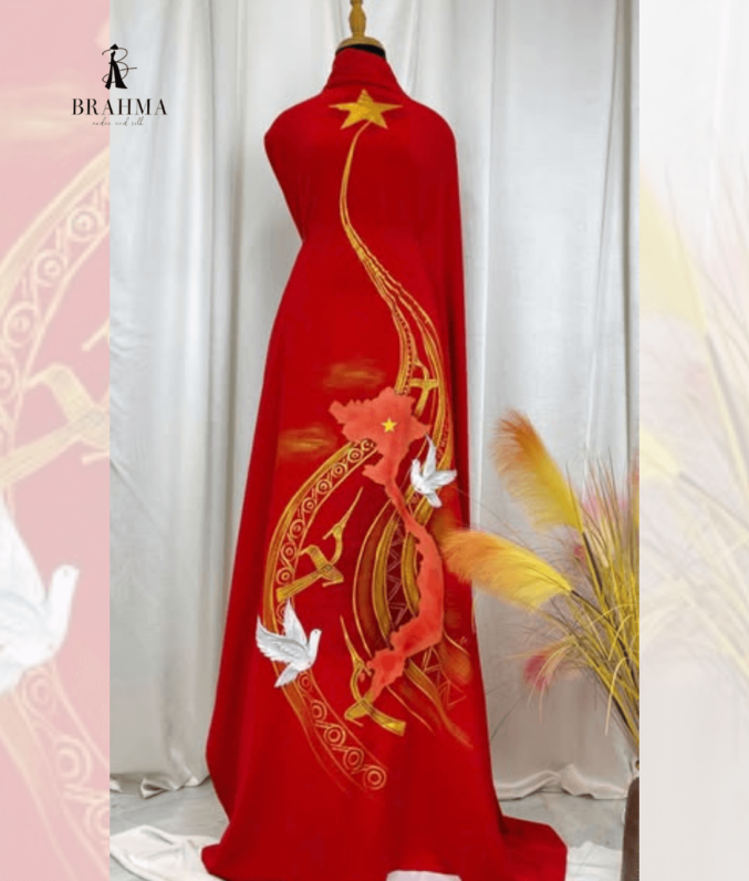 Đánh giá Áo Dài Vẽ Tay Chủ Đề Quốc Khánh – Màu Đỏ Thiêng Liêng, Họa Tiết Biểu Tượng Việt Nam