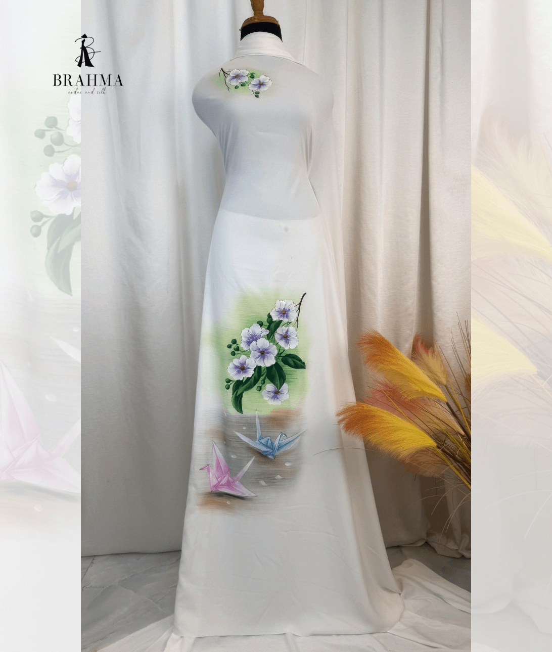 Đánh giá BRAHMA – Vải Áo Dài Vẽ Tay Hoa Bằng Lăng & Hạc Giấy Cho Giáo Viên