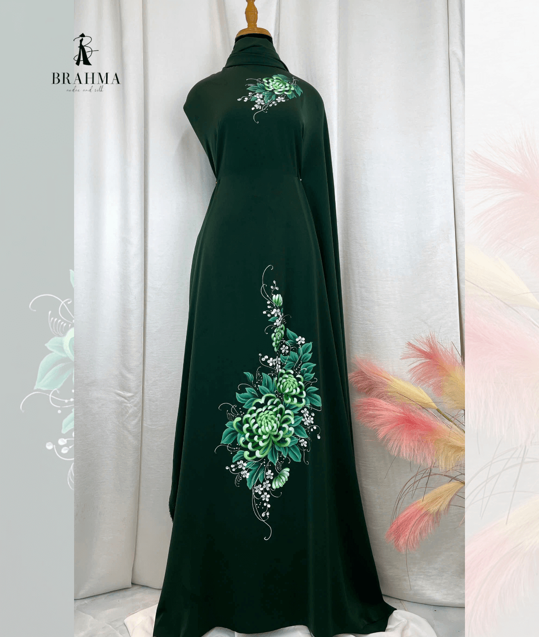 “Vải áo dài hoa cúc BRAHMA – họa tiết vẽ tay thủ công tinh xảo, sang trọng và độc bản. Chất liệu lụa cao cấp, thích hợp cho nhà may, nhà vải kinh doanh hoặc may áo dài dự tiệc, lễ hội.”