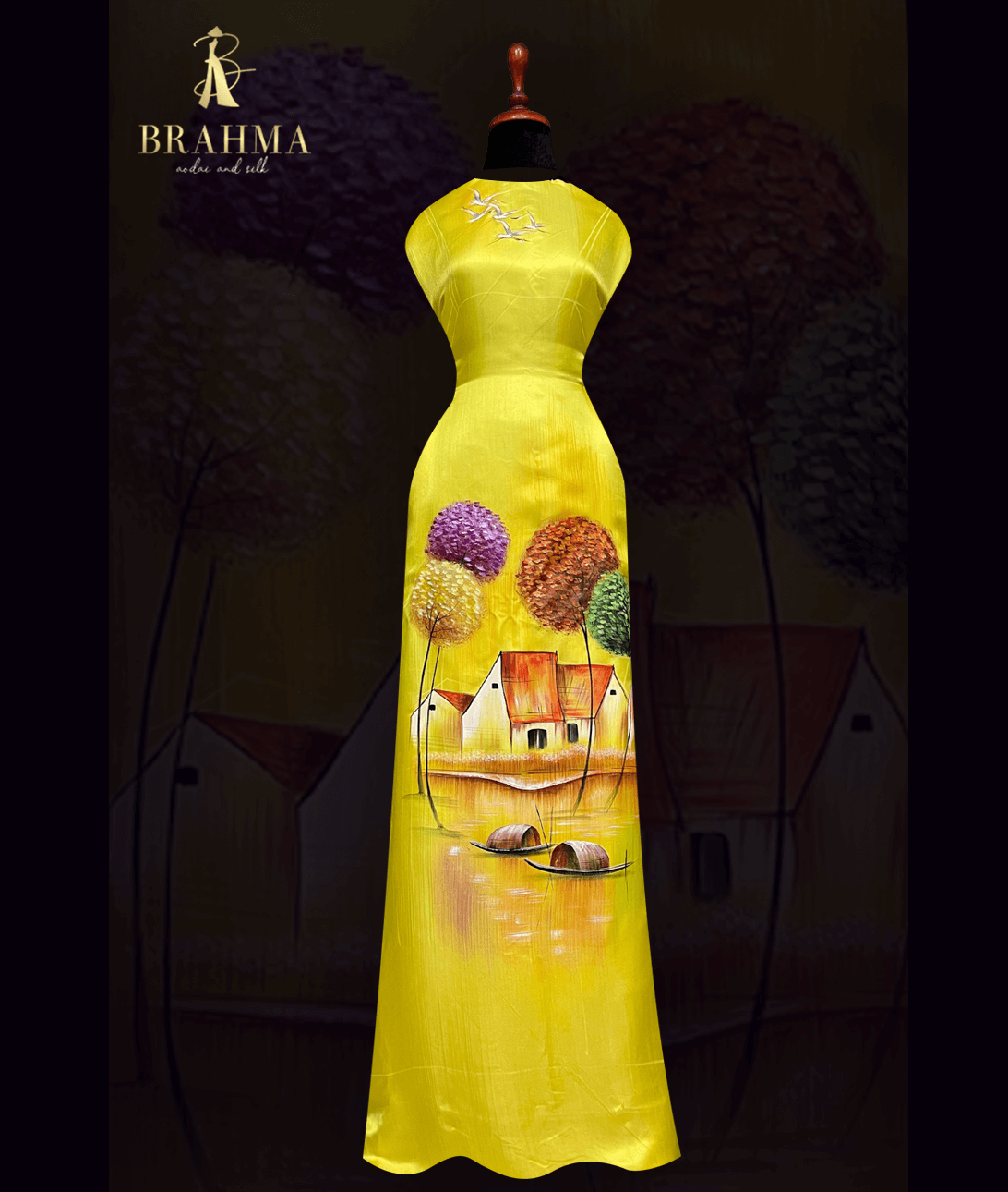 Được dệt từ 100% lụa tơ tằm tự nhiên, chất vải mềm mại, nhẹ tênh, có độ bóng dịu và khả năng thấm hút tốt, tạo cảm giác thoải mái tuyệt đối khi mặc. Trên nền vải ấy, từng nét họa tiết được vẽ tay thủ công tỉ mỉ bởi những nghệ nhân lành nghề – biến mỗi tấm vải thành một tác phẩm nghệ thuật duy nhất. Họa tiết hoa sen, chim hạc, hay tranh thủy mặc được thể hiện sinh động, tinh tế, đầy chất thơ.