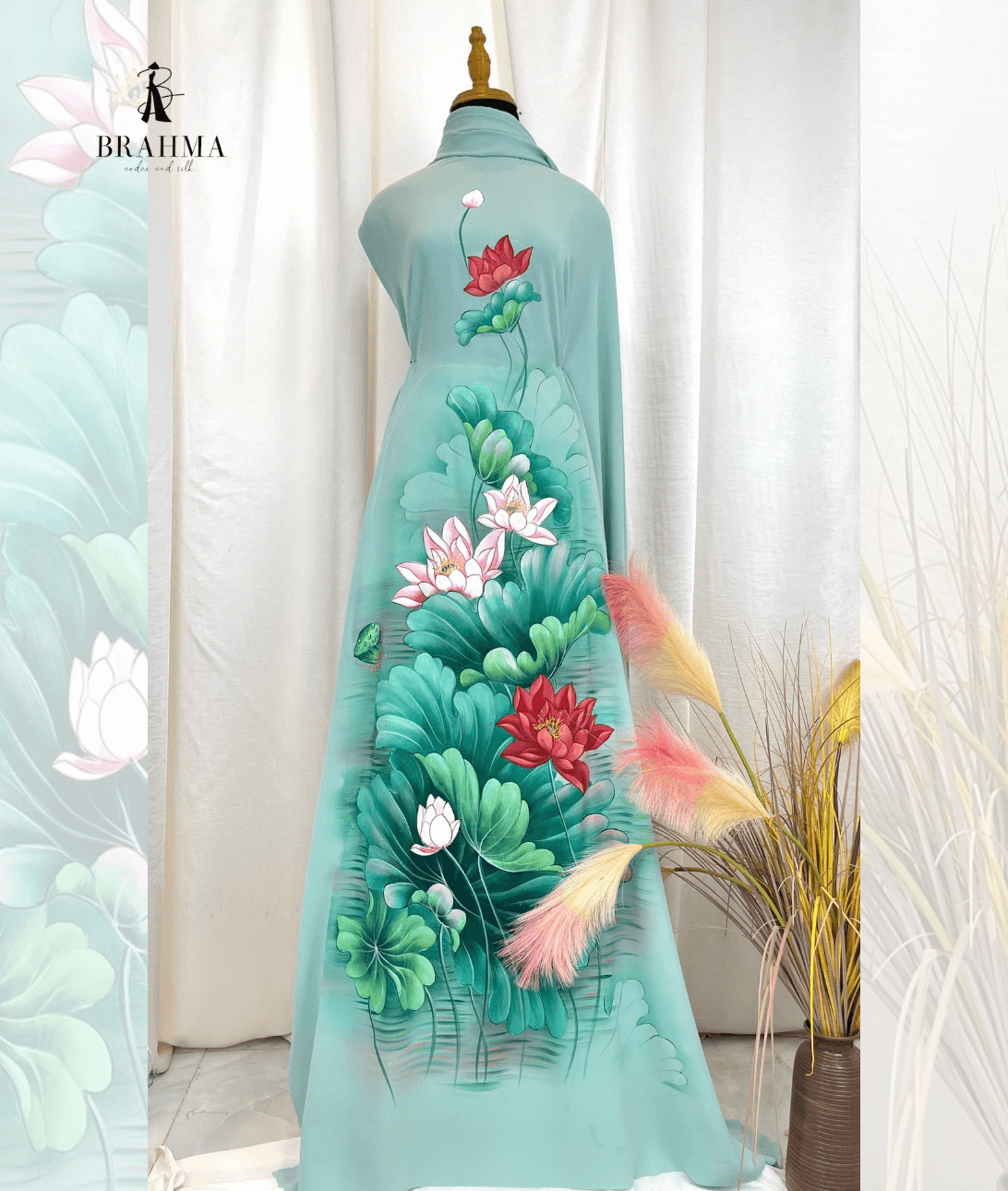 Đánh giá Vải áo dài lụa xanh ngọc vẽ tay hoa sen BRAHMA – Thanh khiết, sang trọng & độc bản thủ công