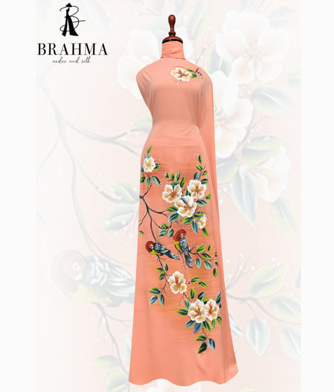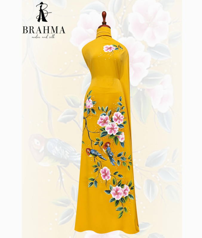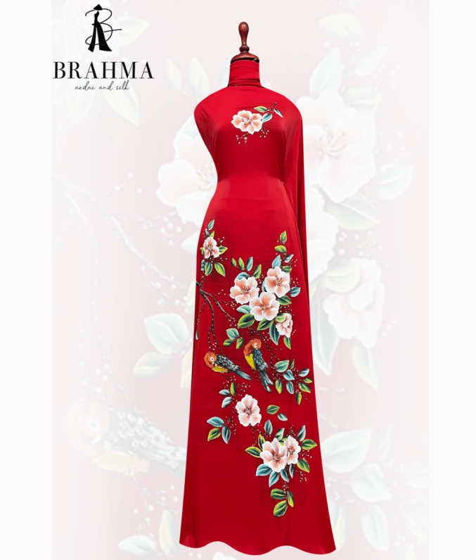 Vải áo dài được làm từ chất liệu vải mềm mại và bền đẹp, giúp người mặc cảm nhận được sự thoải mái và thoáng mát khi mặc. Sản phẩm được thiết kế với họa tiết vẽ Chim Vẹt & Hoa Trà độc đáo, tinh tế và rất đẹp mắt. Họa tiết này mang đến cho sản phẩm một vẻ đẹp hoàn toàn khác biệt, tạo sự nổi bật và thu hút mọi ánh nhìn khi mặc.