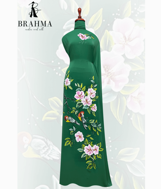 Đánh giá Vải áo dài thiết kế vẽ Chim Vẹt & Hoa Trà cao cấp TK01
