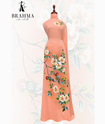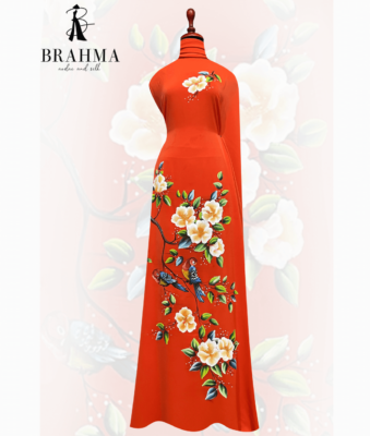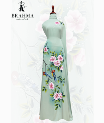 Đánh giá Vải áo dài thiết kế vẽ Chim Vẹt & Hoa Trà cao cấp TK01