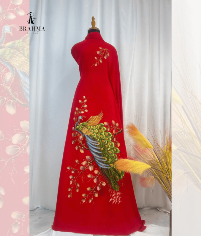 Đánh giá Vải Áo Dài Vẽ Tay Chim Công Ép Đá – Quý Phái & Nổi Bật Dành Cho Bà Sui, Dự Tiệc