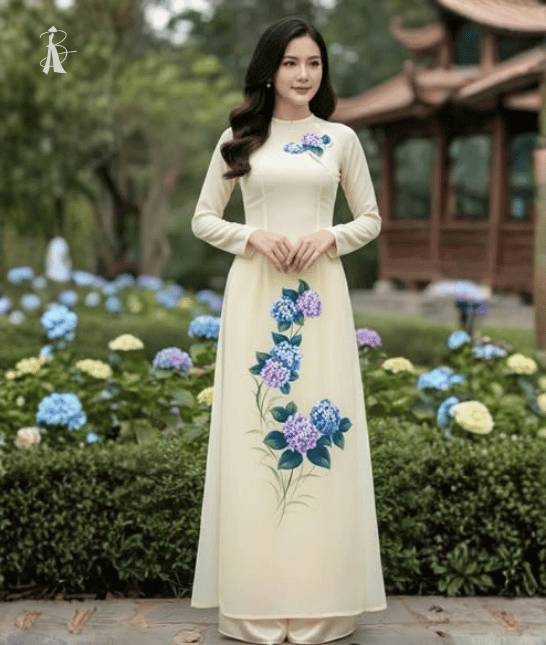 Đánh giá Vải Áo Dài Vẽ Tay Hoa Cẩm Tú Cầu Thanh Lịch 2 – Lụa Bảo Anh Cao Cấp BRAHMA