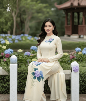 Đánh giá Vải Áo Dài Vẽ Tay Hoa Cẩm Tú Cầu Thanh Lịch 2 – Lụa Bảo Anh Cao Cấp BRAHMA