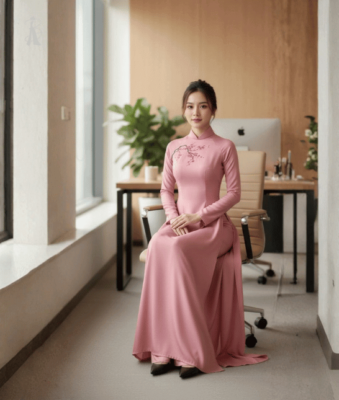 Đánh giá Vải Áo Dài Vẽ Tay Hoa Đào Nhẹ Nhàng – Thiết Kế Độc Quyền BRAHMA