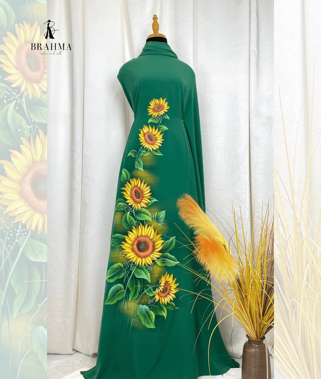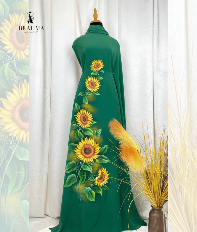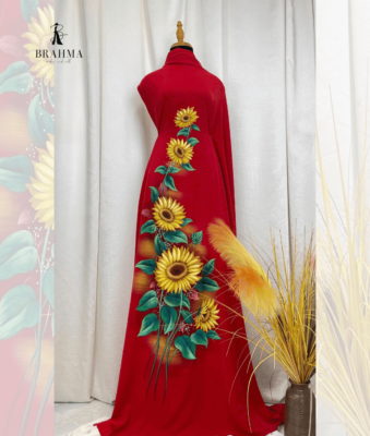 Đánh giá Vải áo dài vẽ tay hoa hướng dương BRAHMA – Tỏa sáng rực rỡ, độc bản thủ công cao cấp