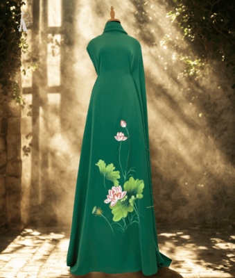 Đánh giá Vải Áo Dài Vẽ Tay Hoa Sen Thanh Khiết – Lụa Bảo Anh Xanh Ngọc BRAHMA