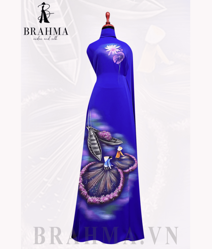 Đánh giá Vải Áo Dài Vẽ Tay Phong Cảnh :” Thu Hoạch Hoa Súng ” – THS1