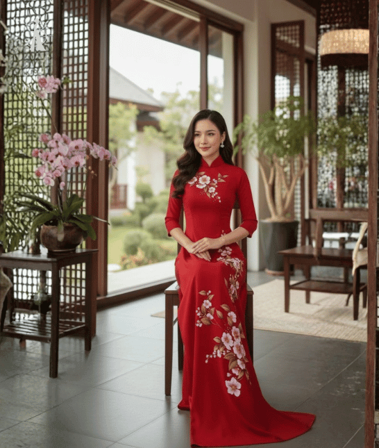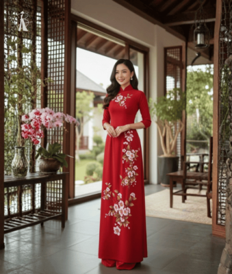 Đánh giá Vải Áo Dài Vẽ Tay Sắc Đỏ Quyến Rũ – Họa Tiết Hoa Nhỏ Thanh Lịch BRAHMA