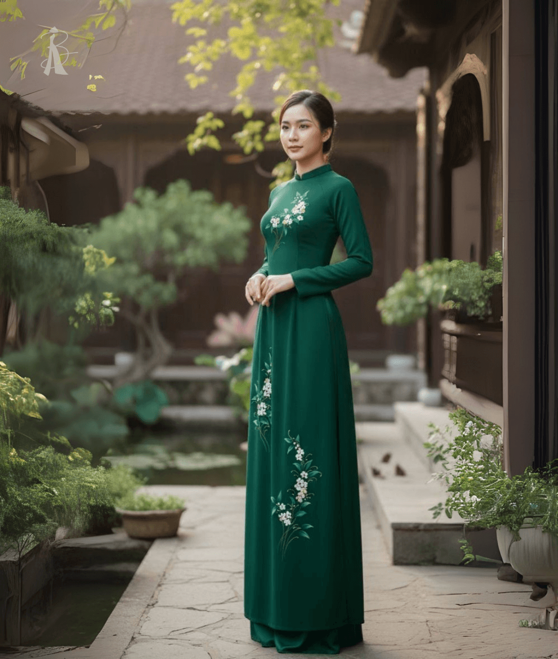 Vải áo dài vẽ tay xanh ngọc, họa tiết hoa thủ công tinh tế, trẻ trung và duyên dáng – lựa chọn hoàn hảo cho phong cách thanh xuân.