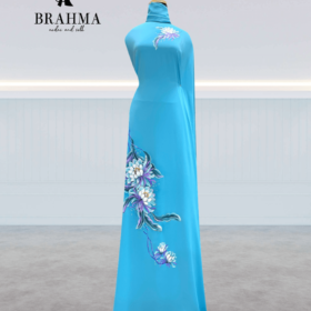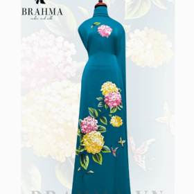 Vải Áo Dài Vẽ Tay Họa Tiết Lập Thể – Lụa Valentino Xanh Độc Bản BRAHMA