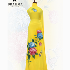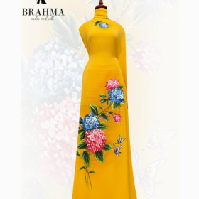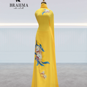 Vải Áo Dài Vẽ Tay Hoa Vàng Tinh Khôi – Lụa Trắng Cao Cấp BRAHMA