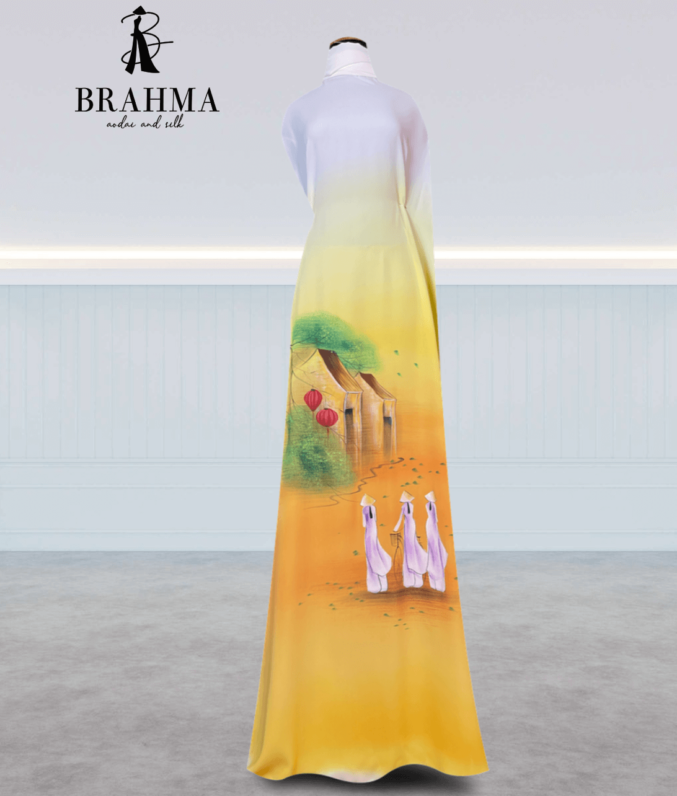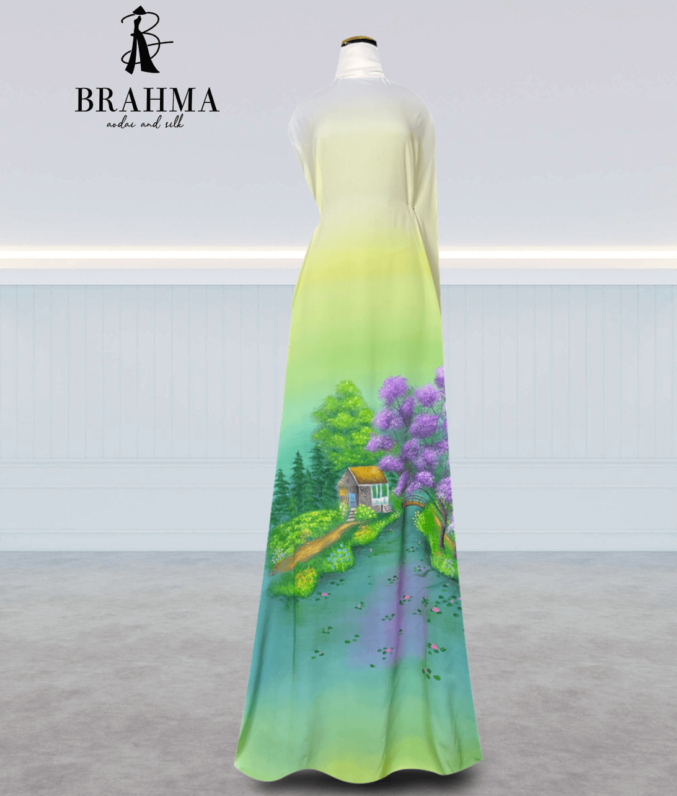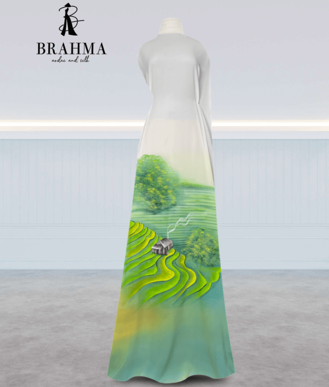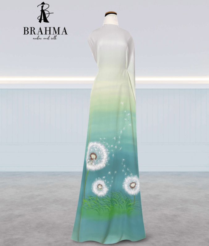Vải Áo Dài Vẽ Tay BRAHMA – Hoa Lá Mềm Mại Và Quạt Cách Điệu Tinh Tế