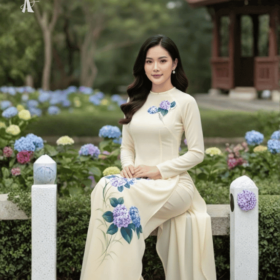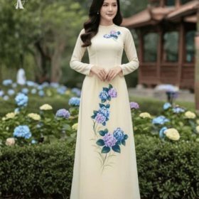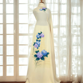 Vải Áo Dài Vẽ Tay Hoa Cẩm Tú Cầu Thanh Lịch 2 – Lụa Bảo Anh Cao Cấp BRAHMA