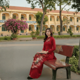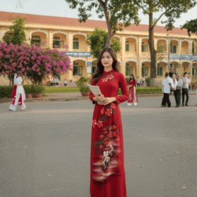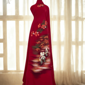 Vải Áo Dài Vẽ Tay Hoa Phượng Tri Ân 20/11 – Lụa Đỏ Trầm Sang Trọng BRAHMA
