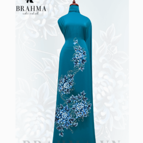 Áo Dài Họa Tiết Chim Trĩ Và Hoa Mẫu Đơn TK120- Nghệ Thuật Trên Vải Nhung Cao Cấp