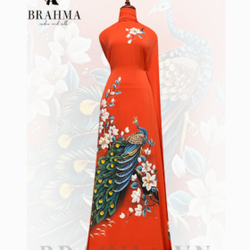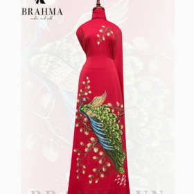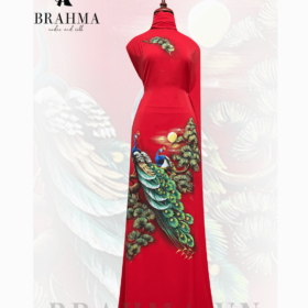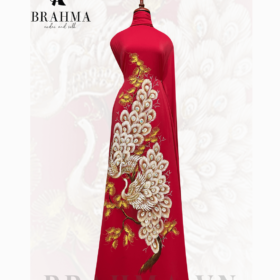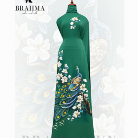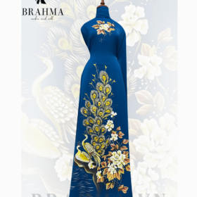 Vải áo dài thiết kế vẽ chim công cao cấp TK11