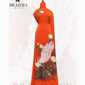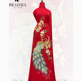 Vải áo dài thiết kế vẽ chim công cao cấp TK12