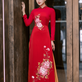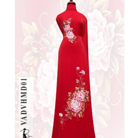 vải áo dài vẽ tay hoa Mẫu Đơn thiết kế cao cấp TK001