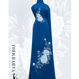 Vải Áo Dài Vẽ Tay Hoa Cúc Nền Xanh Hoàng Gia – Nghệ Thuật & Tôn Dáng