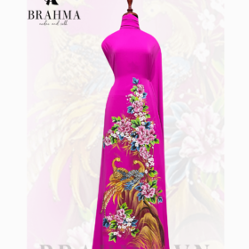 Áo Dài BRAHMA – Chim Hạc & Hoa Đào Vẽ Tay, Thanh Tao & Nổi Bật