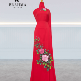 Vải Áo Dài Vẽ Tay Hoa Hồng – Duyên Dáng và Độc Đáo