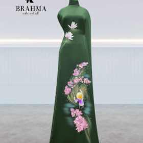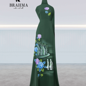 Vải Áo Dài Vẽ Tay BRAHMA – Hoa Nhỏ Mềm Mại, Sắc Xanh Tươi Mát
