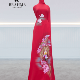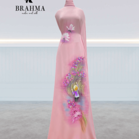 Vải Áo Dài Vẽ Tay BRAHMA – Hoa Lá Mềm Mại Và Quạt Cách Điệu Tinh Tế