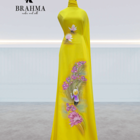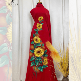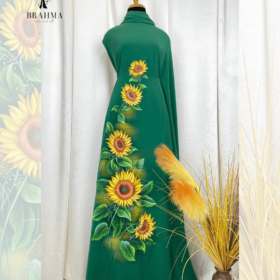 Vải áo dài vẽ tay hoa hướng dương BRAHMA – Tỏa sáng rực rỡ, độc bản thủ công cao cấp