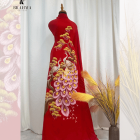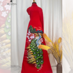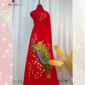 Vải Áo Dài Vẽ Tay Chim Công Ép Đá – Quý Phái & Nổi Bật Dành Cho Bà Sui, Dự Tiệc